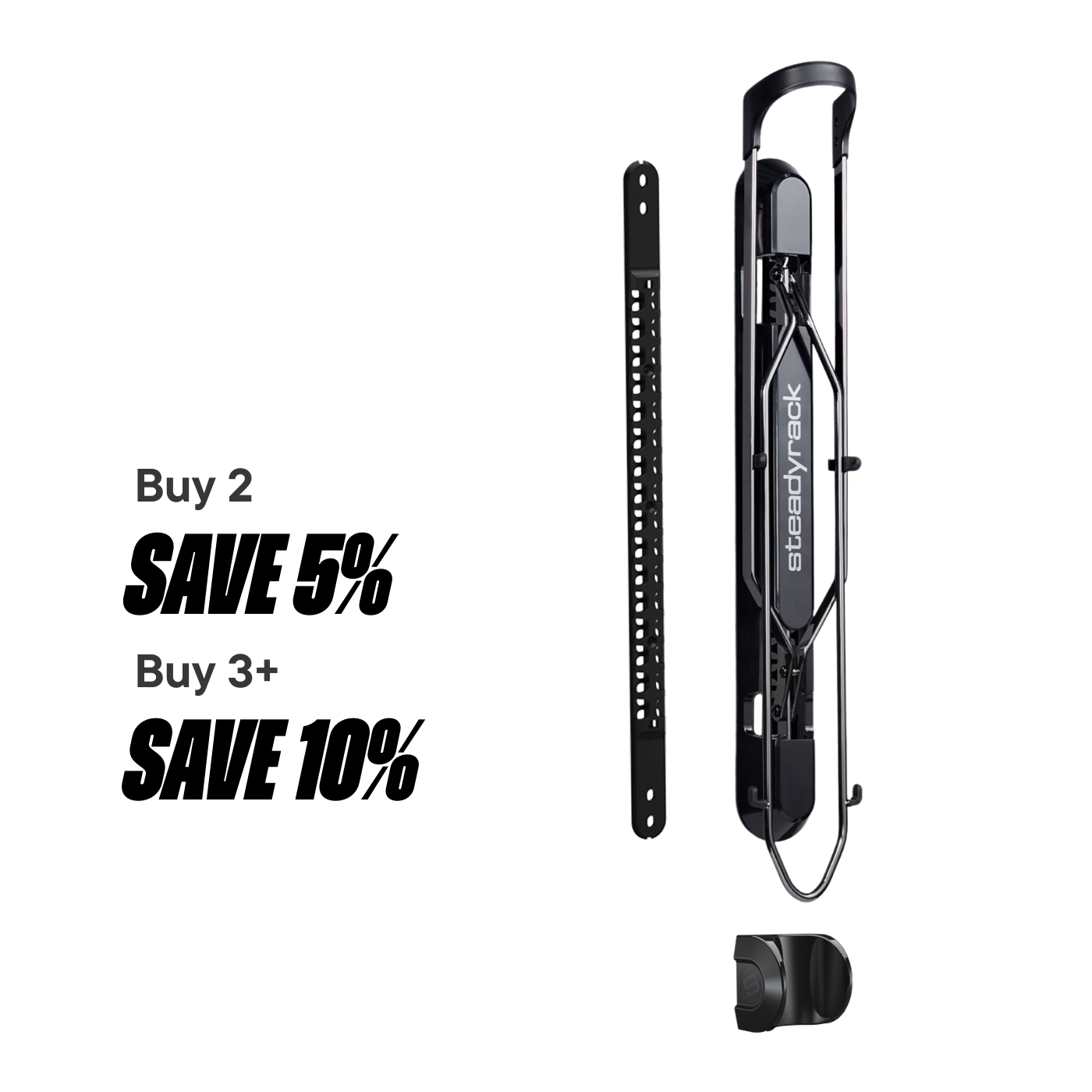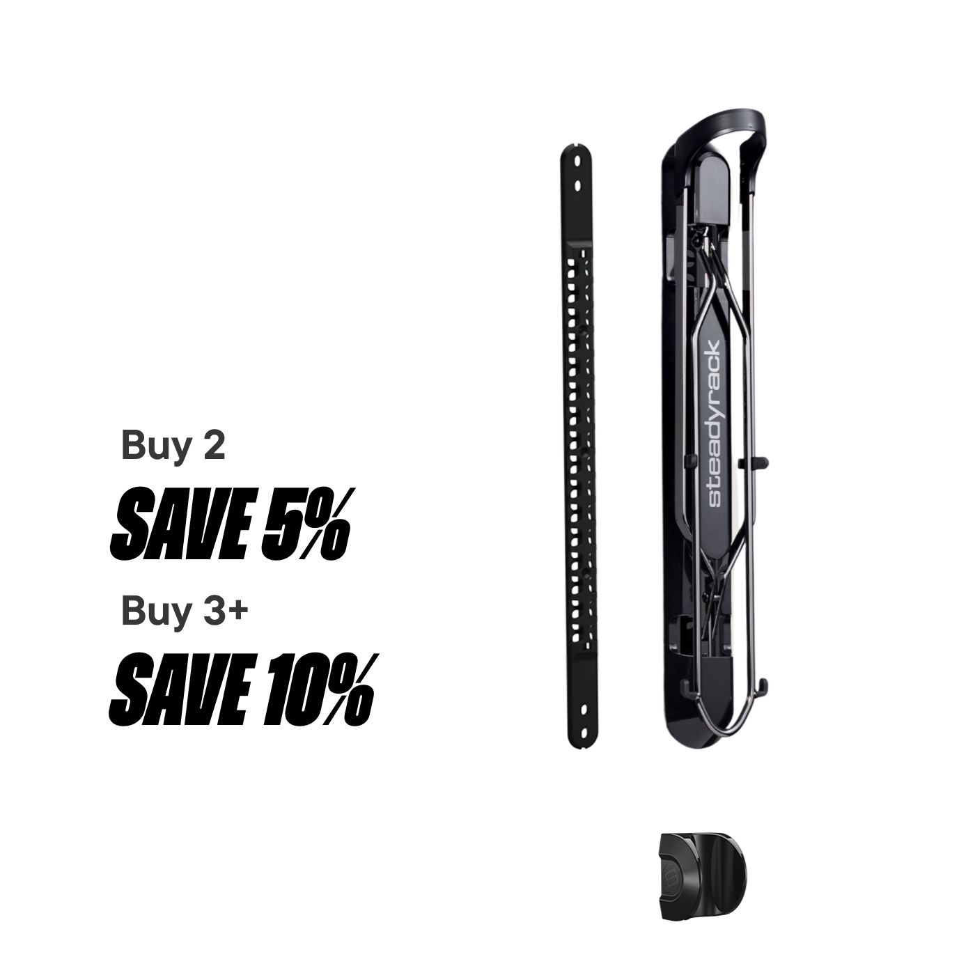 Featuring a pivoting and fold-away design, the ProFlex allows for seamless bike storage without cluttering your space. Designed to integrate effortlessly with the GearMate storage system and future Steadyrack products, it's the perfect choice for cyclists who value both efficiency and aesthetics.